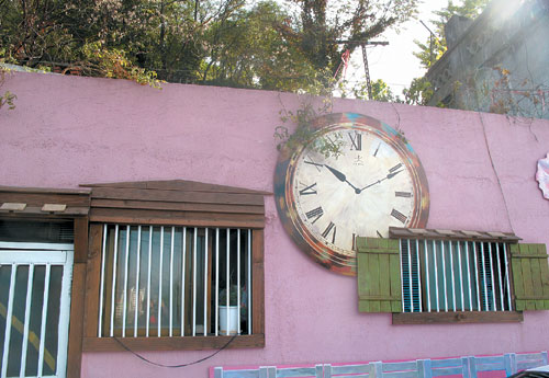 <분홍색 벽에 큰 벽시계> (사진 : 매일경제)