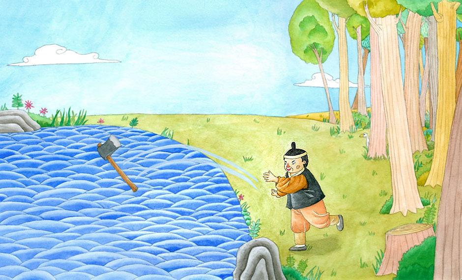 “이를 어쩌나. 하나밖에 없는 도끼인데……이제 어떻게 나무를 베지?”
