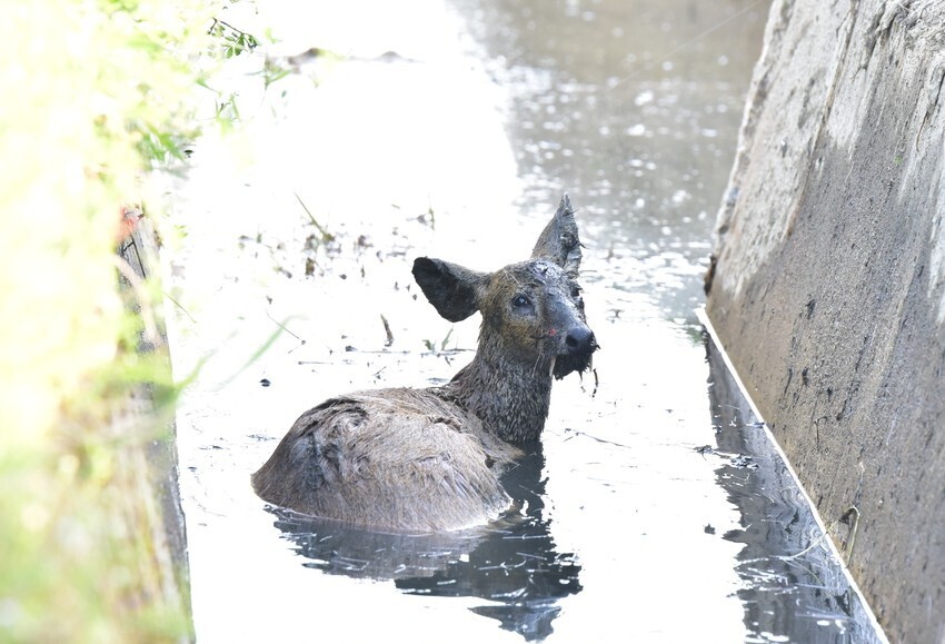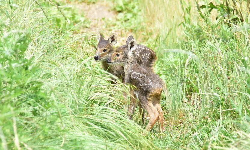 풀숲에 숨어 어미를 기다리는 고라니. 충남야생동물구조센터