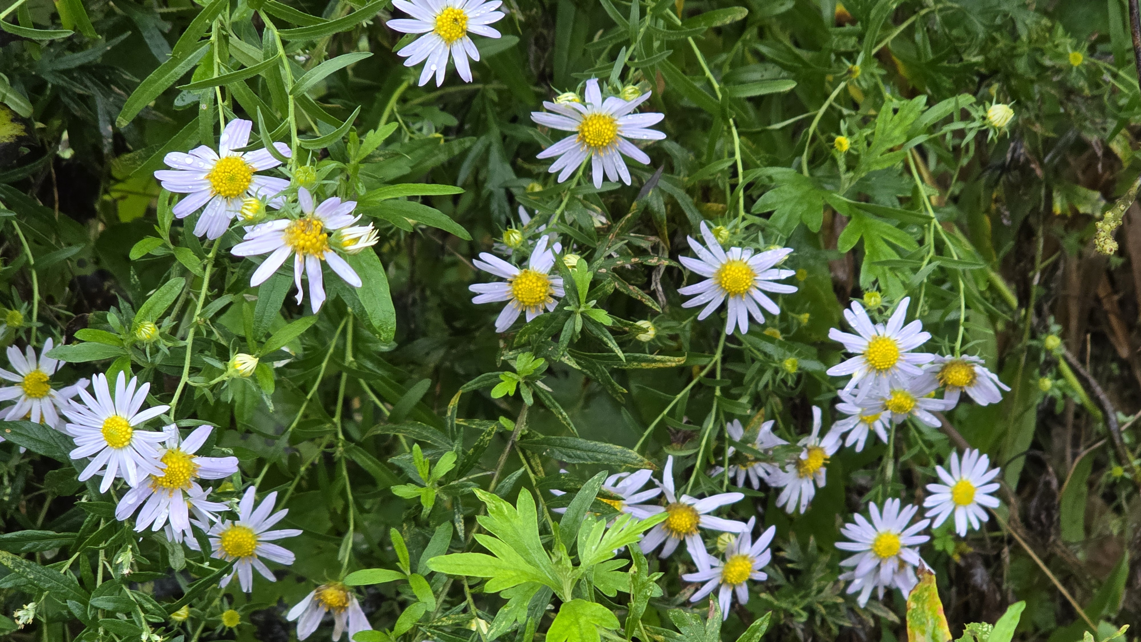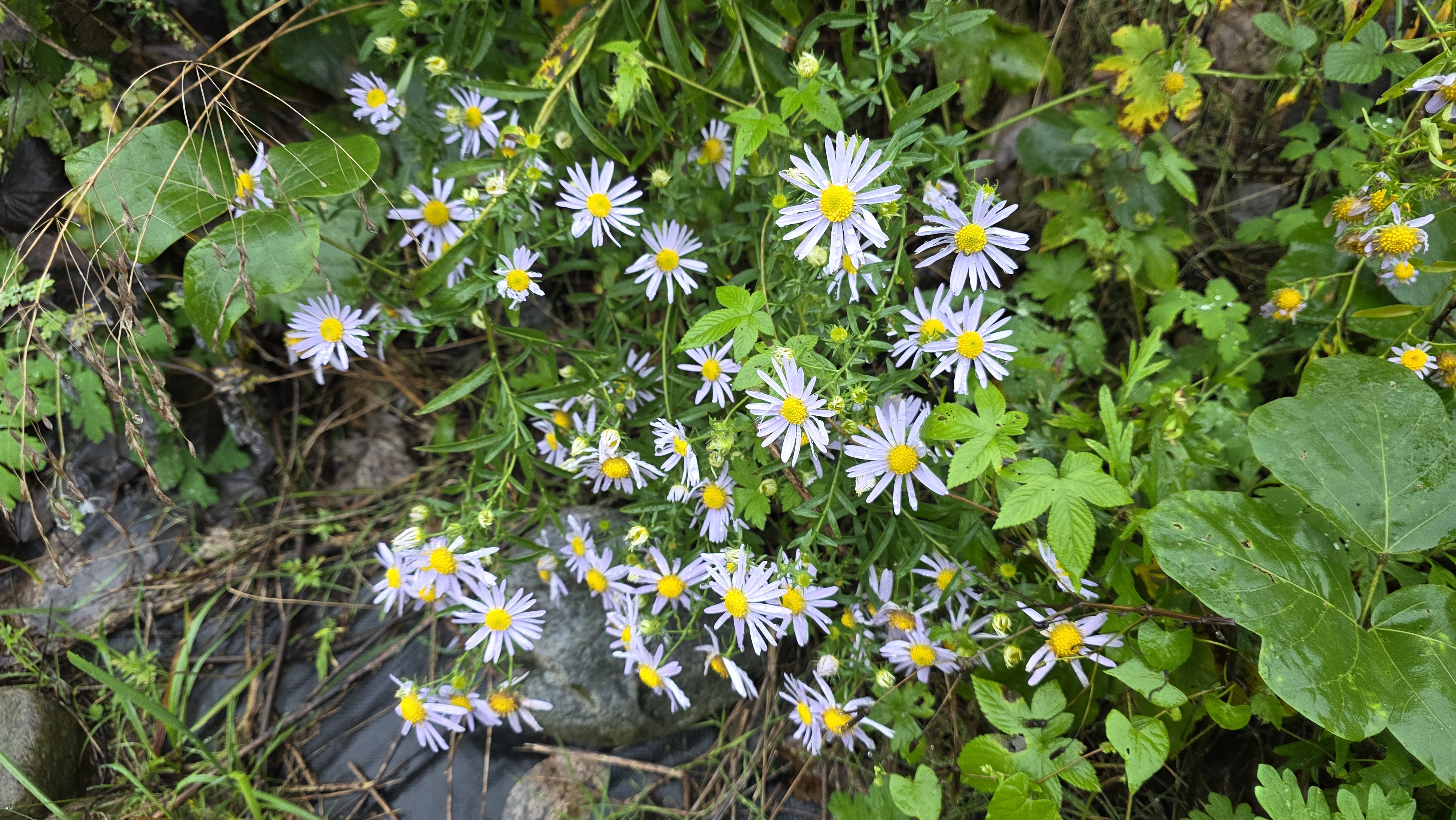 언덕비탈에 개미취 몇개를 뽑아다