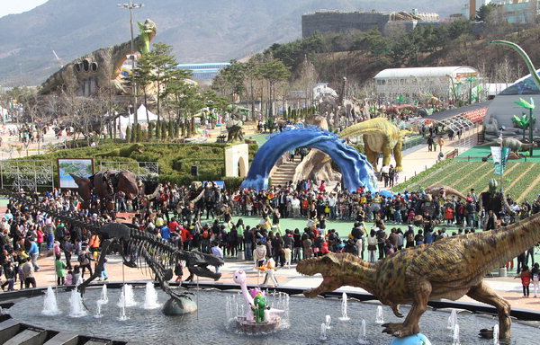 지난달 30일 개장한 고성 공룡세계엑스포는 평일 평균 2만5000여 명, 주말 4만~5만 명 등 방문객이 북새통을 이루면서 이날 현재 40만 명을 넘어섰다. 대박 행진이 이어지면서 조직위는 올해 유치 목표치인 142만 명을 훨씬 웃돌 것으로 전망하고 있다.